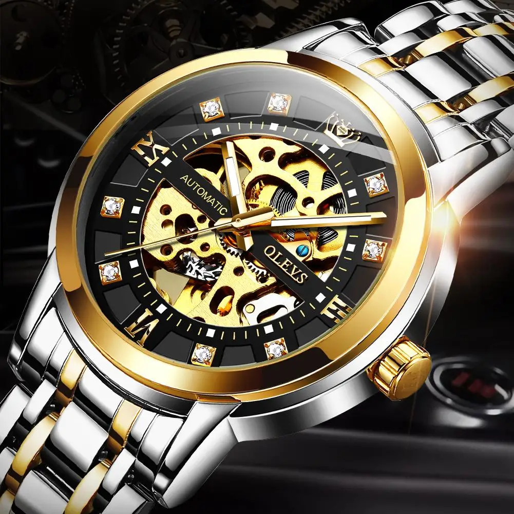 OLEVS original fashion waterproof automatic mechanical luxury men's watch Hollow night light domine